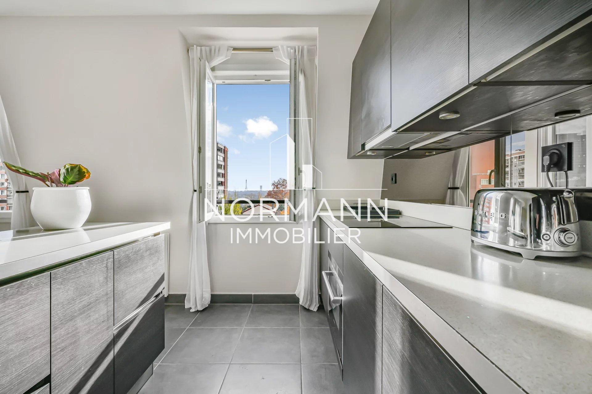 Il se compose: d'une entrée, d'un double séjour avec vue dégagée et sur la tour Eiffel, d'une cuisine américaine entièrement aménagée et équipée, d'une grande chambre avec dressing (possibilité d'une 2ème chambre), d'une salle de douches, d'un wc séparé et rangements.
